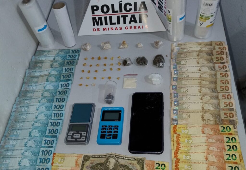 Durante a ação, os militares apreenderam seis pedras crack grandes e outras 26 menores, além de quatro buchas de maconha, R$ 2.638 em dinheiro, cocaína, pasta base de cocaína, uma balança de precisão, um telefone celular, uma maquininha de cartão e uma folha de cheques já preenchida (com características de ter tido adulteração no valor).