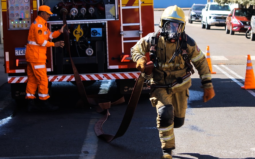 A competição teve como objetivo simular uma resposta rápida e eficiente a uma situação de combate a incêndio. Cada equipe foi formada por três integrantes: um motorista, um chefe de linha e um ajudante de linha. O desafio consistiu em vestir corretamente o roupão de incêndio, os Equipamentos de Proteção Individual (EPIs) e o Equipamento de Proteção Respiratória (EPR), montar uma linha de combate a incêndio com duas mangueiras, adaptadores e esguicho, e finalizar a prova derrubando três cones com o jato d’água.