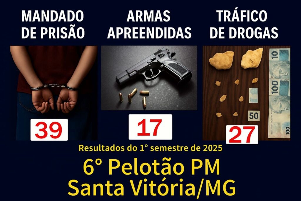 O 6º Pelotão PM de Santa Vitória foi destaque pela produtividade operacional no primeiro semestre de 2025, dentro da Nona Região da Polícia Militar de Minas Gerais – 9ª RPM, com sede em Uberlândia.