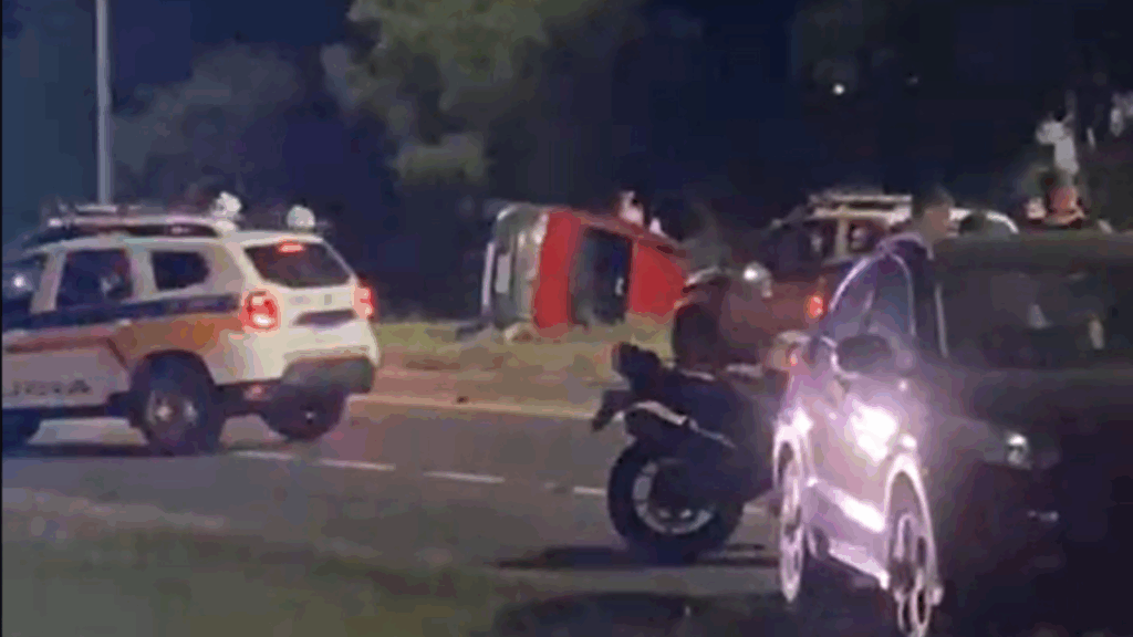 Perseguição policial termina em tiroteio e acidente com seis vítimas, em Uberlândia