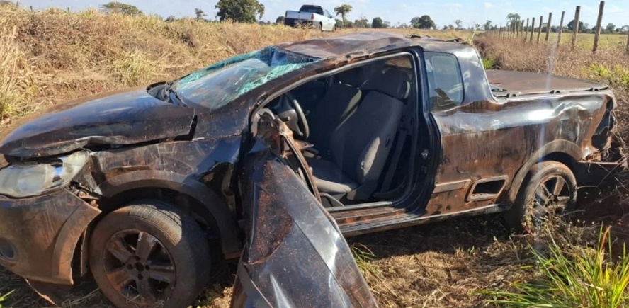 Na tarde desta sexta-feira (26), um grave acidente foi registrado na BR-154, nas proximidades do km 147, entre os municípios de Campina Verde e Itapagipe. Um veículo Saveiro, de cor preta, capotou após a condutora se assustar com um vulto que teria atravessado repentinamente a pista.