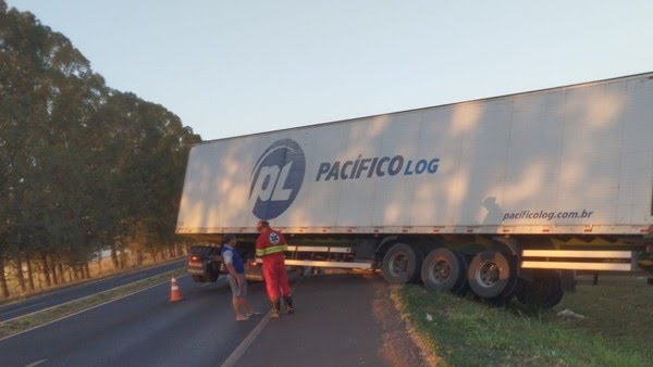 Equipes da concessionária Triunfo Concebra e da Polícia Rodoviária Federal (PRF) atuam no local, onde, até o fim da manhã, a faixa da esquerda e o acostamento permaneciam interditados à espera da seguradora do veículo.
