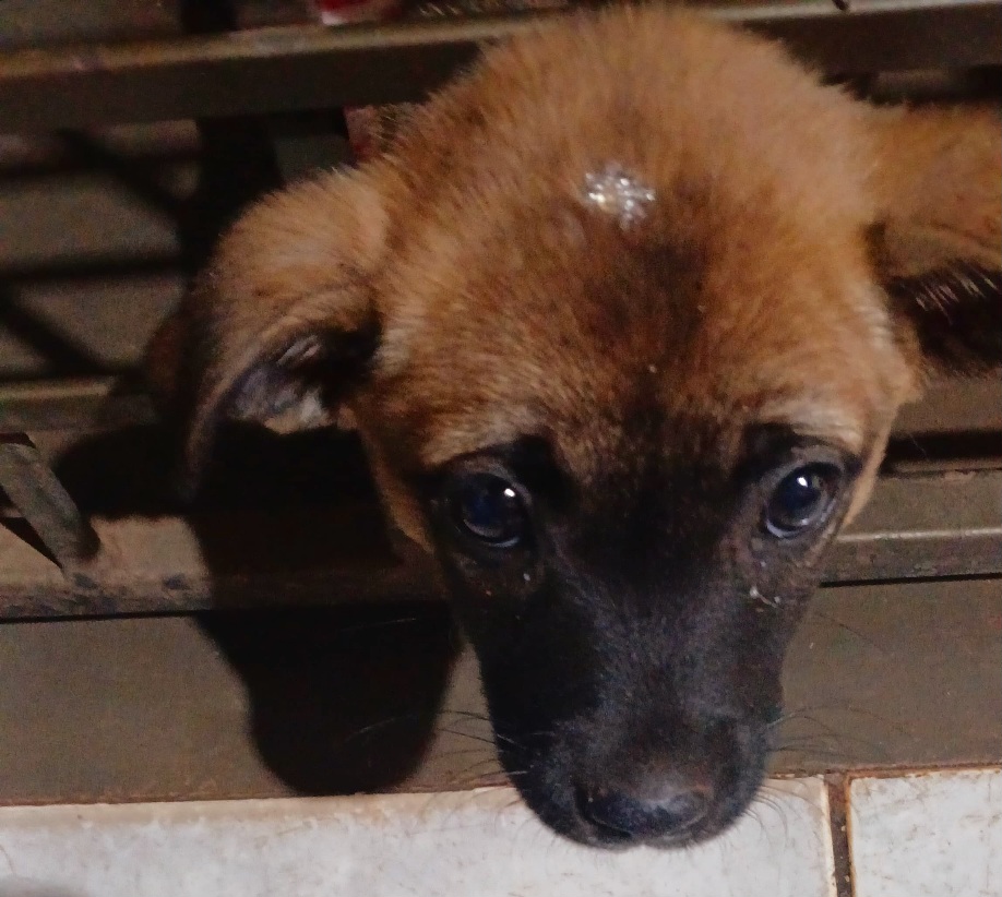 Uma filhote de cachorro havia prendido a cabeça na grade da porta da área externa, nos fundos de uma residência. Segundo informações, o animal teria colocado a cabeça entre as barras e, devido ao inchaço, não conseguiu retirá-la por conta própria, ficando em situação de perigo e sofrimento.