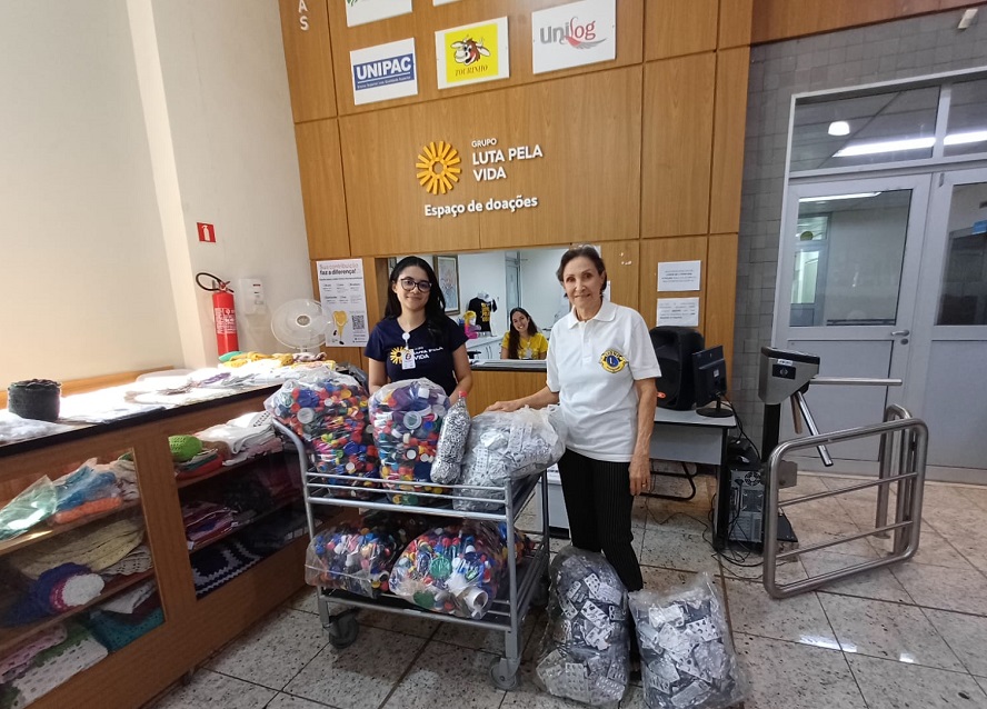 O Lions Clube de Santa Vitória repassou ao Grupo Luta Pela Vida em Uberlândia, tampas plásticas e embalagens (cartela) descartáveis de medicamentos arrecadadas pela entidade. O material foi entregue no Espaço de Doações da instituição no mês de agosto.