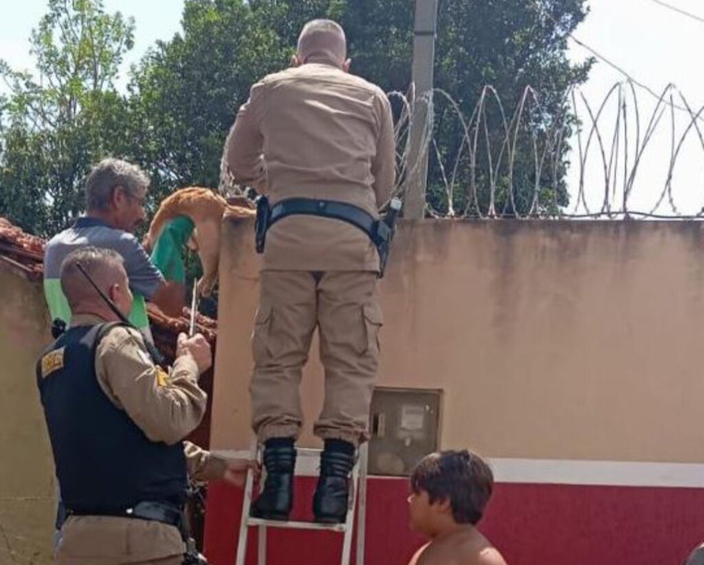 Na manhã desta terça-feira (16), a guarnição Policial Militar foi acionada por populares a realizar uma intervenção numa residência na Rua Horácio Marques (BDA), onde havia um gato adulto preso a uma concertina de segurança.