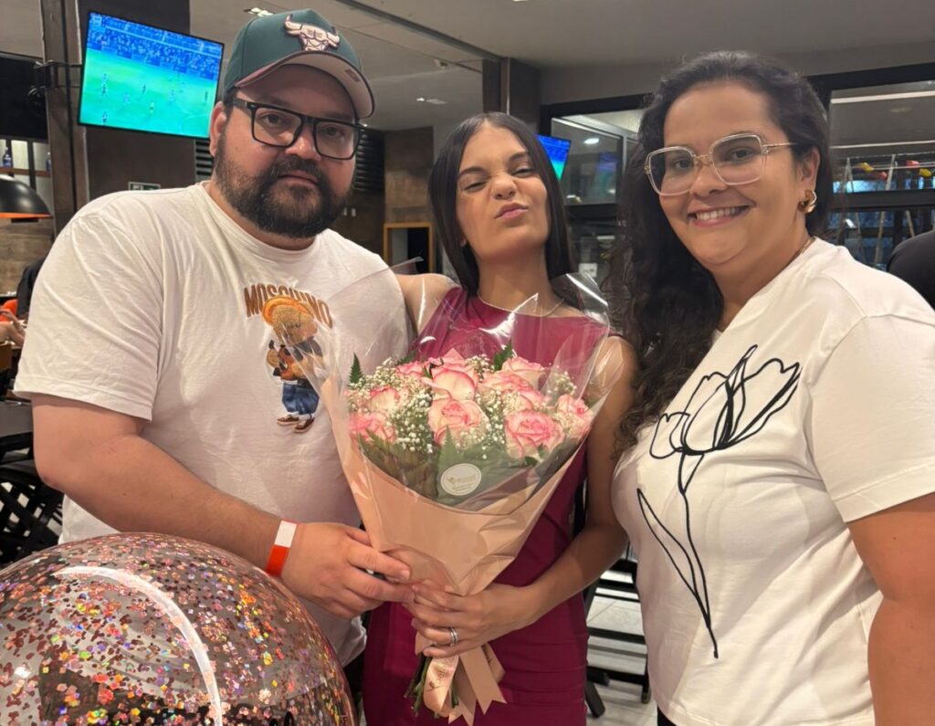 Danielly ladeada pelos pais Dennis e Maria de Fátima.