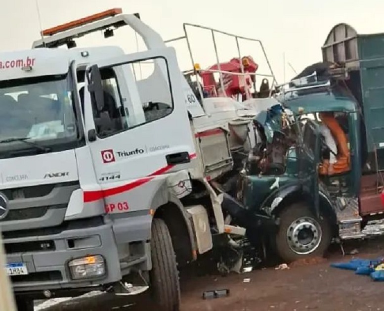 De acordo com a PRF, o caminhão caçamba colidiu frontalmente com a lateral esquerda do guincho da concessionária, que realizava uma manobra de retorno. O impacto aconteceu no sentido Frutal/Comendador Gomes.