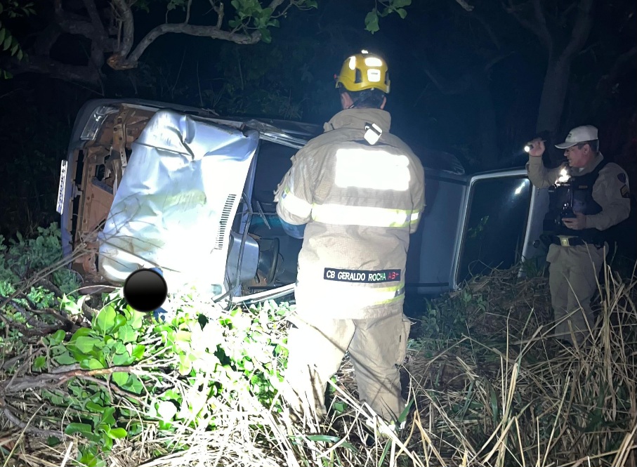 Foi realizada a avaliação da cena e a adoção das medidas de segurança para evitar novos riscos, sendo constatado que uma das vítimas estava presa às ferragens do veículo, que havia tombado às margens da rodovia.