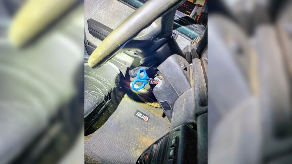 Com tesoura infantil na ignição, dupla é presa com carro furtado em MG