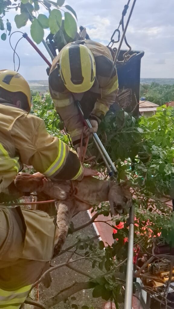 Finalmente! Onça-parda é capturada após mais de 24h em árvore em Chaveslândia
