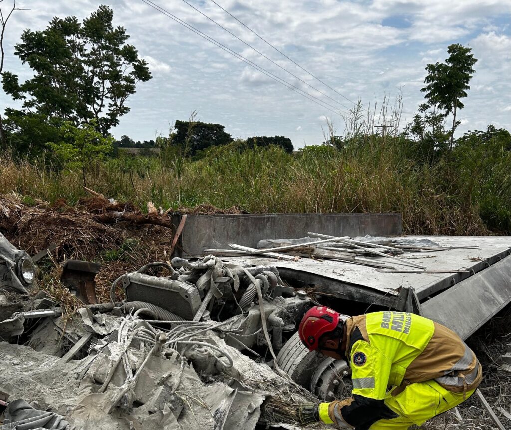 De acordo com as informações, o caminhão saiu da pista e havia suspeita de que o condutor estivesse preso nas ferragens. No local, os bombeiros confirmaram a presença de uma vítima do sexo masculino, de 33 anos, que já se encontrava em óbito.