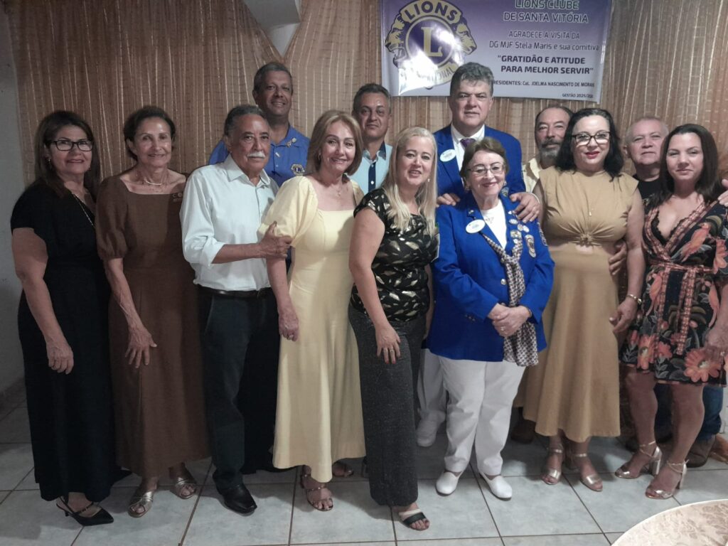 Nesta sexta-feira (21), o Lions Clube de Santa Vitória recebeu a visita da Governadora Distrito LB-3 do Lions Clube Internacional, Stela Maris Silva Andrade, referente ao Ano Leonístico 2025/2026, que participou de uma reunião festiva na sede do clube. Companheiros leões dos clubes Ituiutaba e Lions Centro também participaram do encontro, assim como o acompanhante adulto PDG Airton Pinhal.