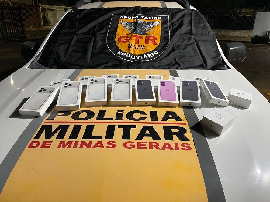 PM Rodoviária apreende iPhones e cosméticos sem documentação fiscal na MG-255 em Frutal