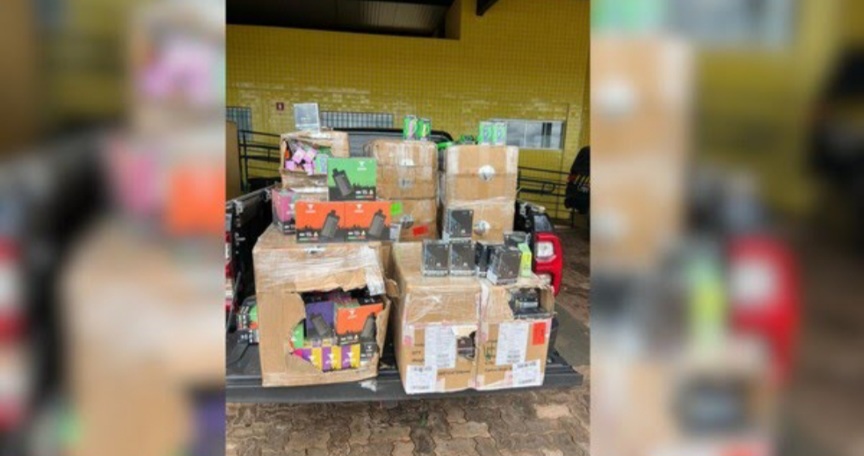 Uma fiscalização da Polícia Rodoviária Federal (PRF) apreendeu 1,5 mil unidades de cigarros eletrônicos e 100 insumos usados no dispositivo. A apreensão aconteceu no domingo (7), no km 56 da BR-153, em Monte Alegre de Minas, no Triângulo Mineiro. O condutor de 49 anos que levava a carga foi preso.