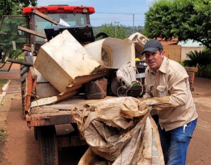 Durante a ação, foram retiradas mais de quatro carretas de trator carregadas de materiais que poderiam acumular água e se transformar em criadouros do mosquito, como entulhos, recipientes e outros resíduos descartados de forma irregular.