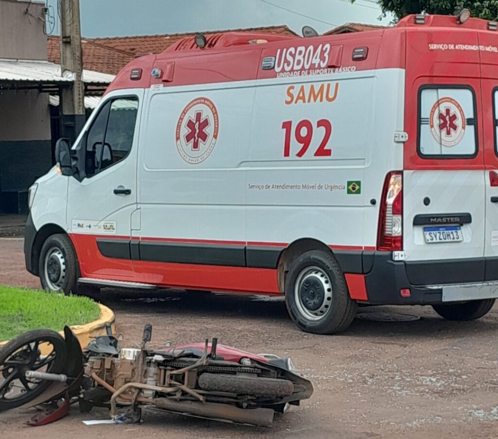 Um acidente de trânsito envolvendo um carro e uma motocicleta foi registrado na tarde desta sexta-feira (19), em um cruzamento do bairro Parque das Acácias, em Santa Vitória.
