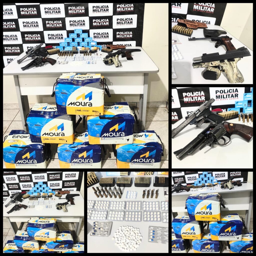 No local, os militares depararam-se com o denunciado chegando à residência, sendo realizado contato e cientificado acerca da denúncia em seu desfavor e durante as buscas, foram localizados diversos armamentos, munições, medicamentos e outros materiais ilícitos.