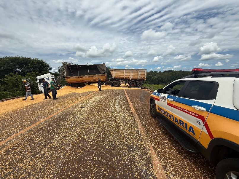 A Polícia Militar Rodoviária foi acionada na manhã desta segunda-feira, 26/1, por volta das 9h30, para um acidente envolvendo um caminhão carregado com milho na MG-154, no km 91, no município de Ituiutaba, sentido Campina Verde.