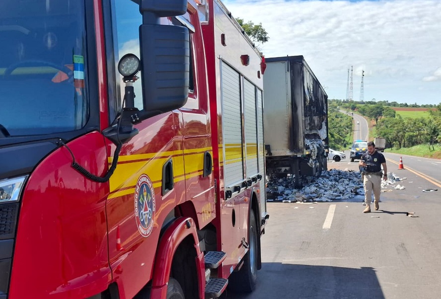 Incêndio em carreta na BR-153 mobiliza Corpo de Bombeiros de Ituiutaba