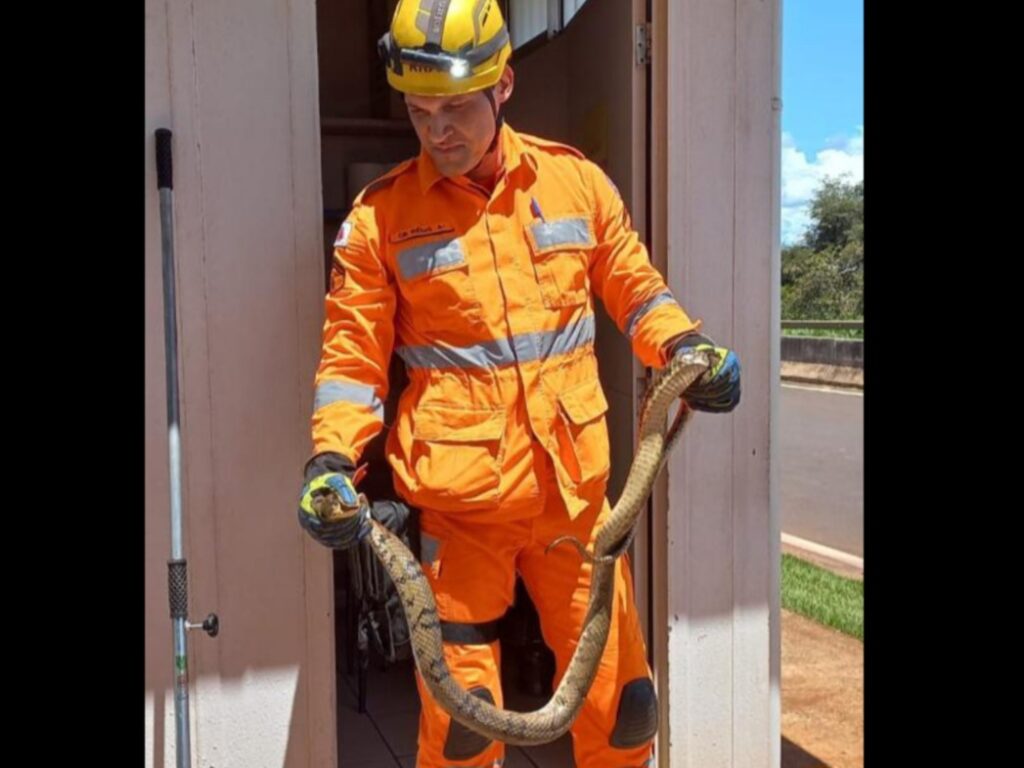 Utilizando técnicas adequadas de salvamento e manejo de animal peçonhento, os bombeiros realizaram a captura com segurança.