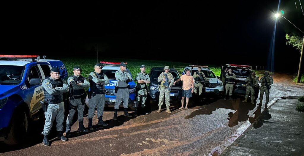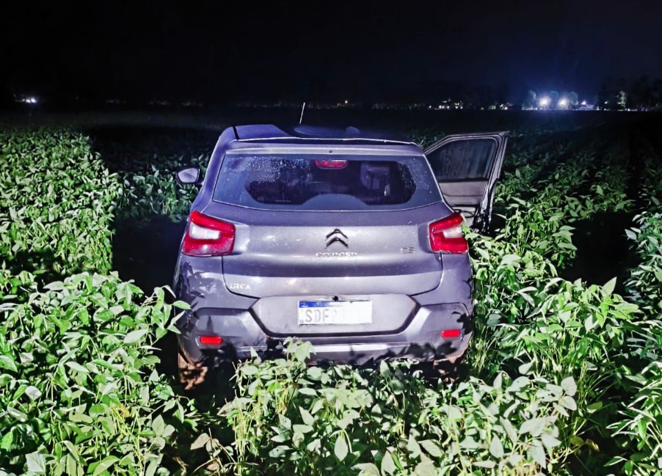 Após diligências conjuntas, o automóvel foi localizado abandonado em meio a uma plantação de soja, na zona rural do município.