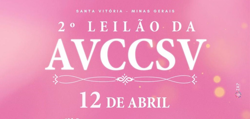 No dia 12 de abril, a Associação de Voluntários de Combate ao Câncer de Santa Vitória realizará o 2º Leilão Beneficente, com leilão de animas e prendas. Será a partir das 11 horas, no salão de eventos da AVCC.