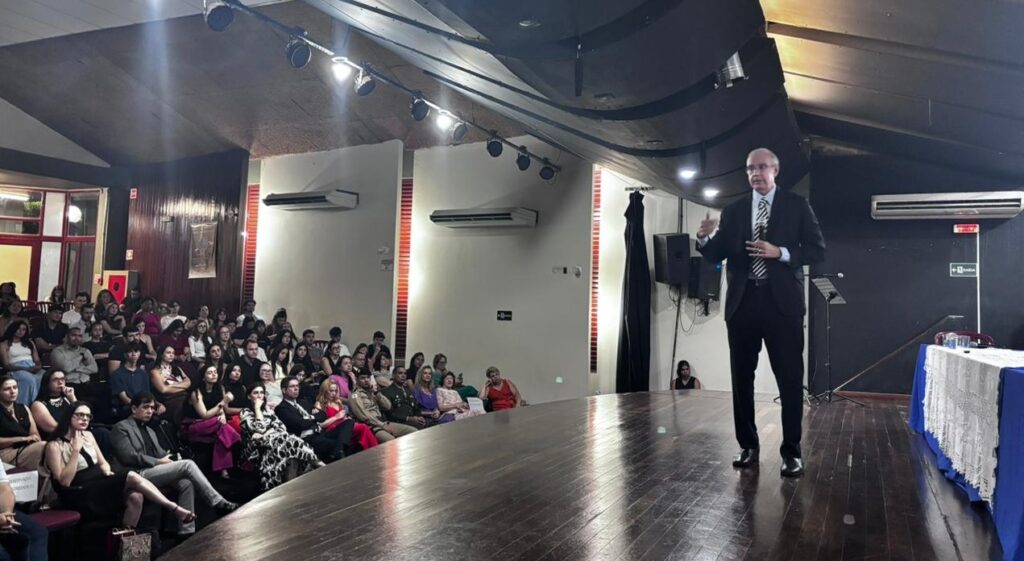 Em sua fala, também dirigiu palavras de incentivo aos estudantes, destacando o compromisso com a formação e a responsabilidade social da profissão jurídica. Em um dos momentos da palestra, afirmou: “Eu estudo porque no futuro alguém irá precisar do meu conhecimento”, ressaltando o papel do estudo contínuo na construção de profissionais preparados para atuar em diferentes áreas do Direito.