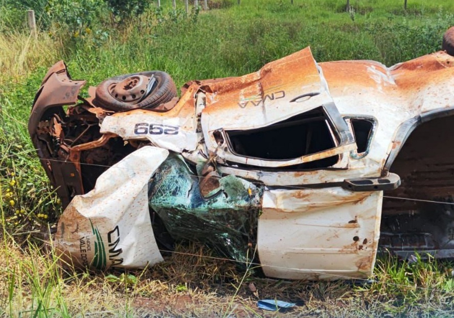 A força da batida foi tão grande que a caminhonete ficou completamente destruída. O veículo capotou várias vezes e ainda colidiu contra um poste, deixando a cena impressionante e chamando a atenção pela gravidade.