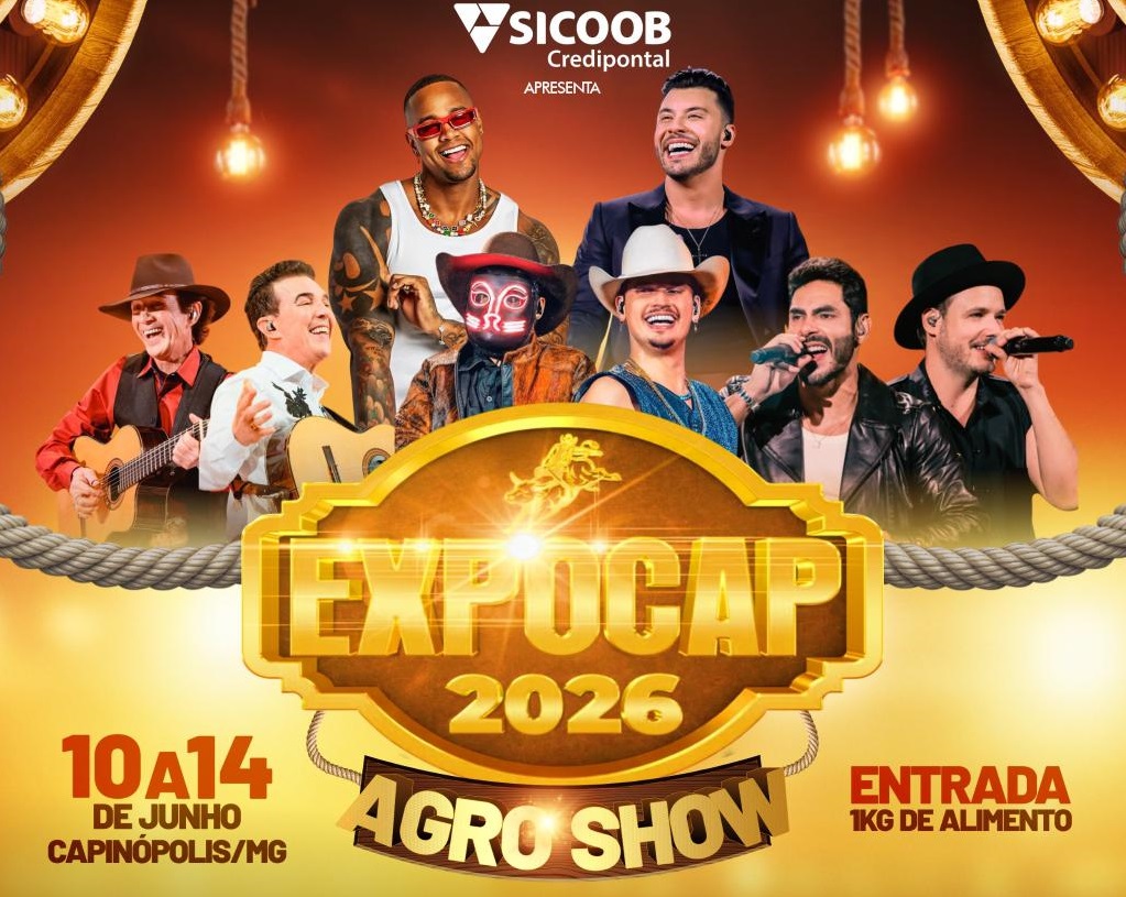 A cidade de Capinópolis (MG) já se prepara para viver um dos momentos mais aguardados do ano. A Expocap 2026 Agro Show, tradicional Exposição Agropecuária do município, será realizada entre os dias 10 e 14 de junho, no Parque de Exposições João de Freitas Barbosa, prometendo reunir milhares de pessoas em uma programação que mistura música, tradição e negócios.