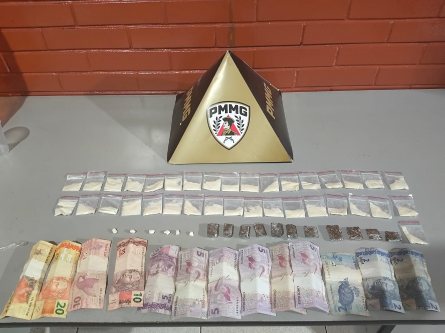 Diante do flagrante, as equipes procederam à abordagem do segundo autor, que ao perceber a presença policial tentou evadir e arremessou um invólucro em um terreno, sendo contido em seguida. Durante a busca pessoal, foram localizadas porções de substância análoga ao crack e dinheiro fracionado (R$ 96), sendo seis pedras de substância análoga ao crack, 35 papelotes de substância análoga à cocaína e 11 porções de substância análoga à maconha.