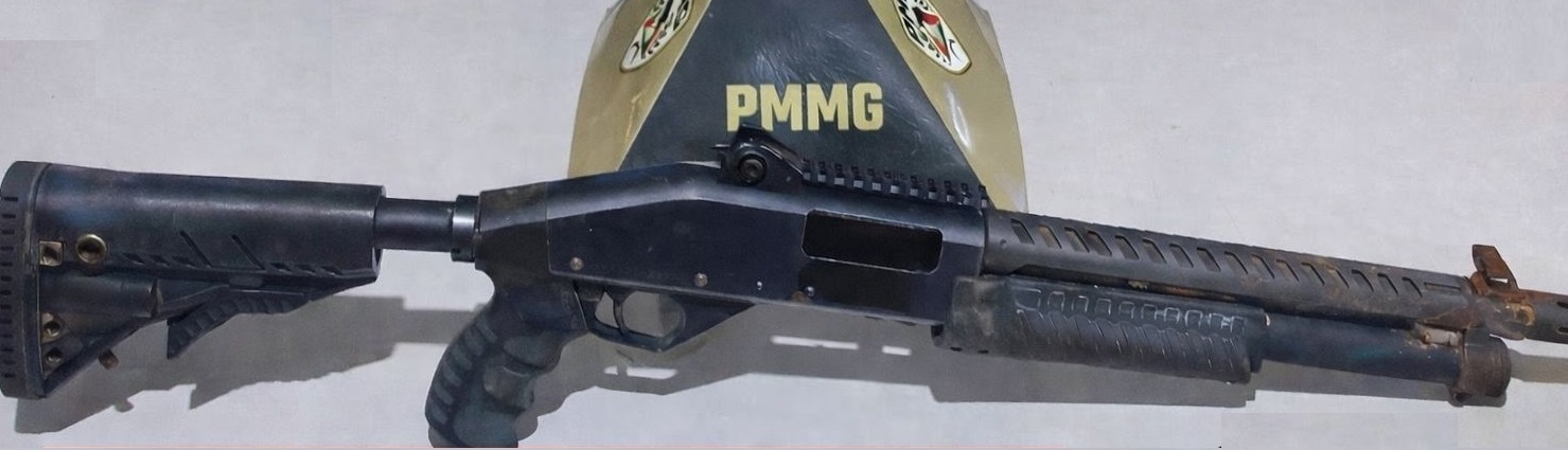 Em continuidade às diligências, durante busca no veículo, foi localizada uma arma de fogo do tipo espingarda calibre 12. O autor assumiu a posse da arma, relatando tê-la subtraído anteriormente.