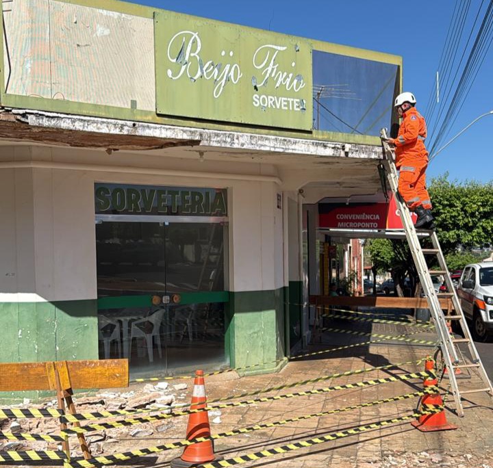 Bombeiros vistoriam prédio após queda parcial de marquise em Monte Alegre de Minas