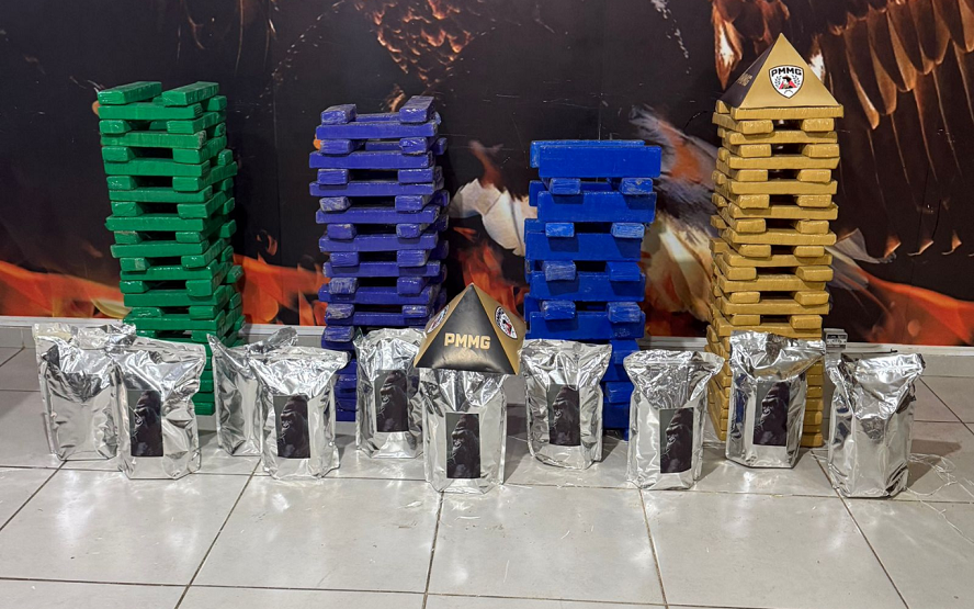 Durante a busca veicular, os policiais localizaram os entorpecentes distribuídos no interior do carro. Ao todo, foram retirados de circulação 180 barras de substância análoga à maconha e dez sacos contendo substância análoga à flor de maconha; além da apreensão de R$ 590 em espécie e quatro aparelhos celulares.