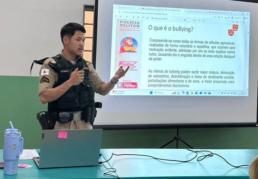 Nesta semana, a Polícia Militar de Minas Gerais realizou uma palestra com o tema bullying na Escola Municipal Professora Edileuza Batista de Aquino, no município de Cachoeira Dourada, direcionada aos pais e responsáveis dos alunos.