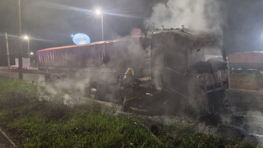 Uma carreta que transportava vergalhões de aço pegou fogo na noite de quarta-feira (29), na BR-365, em Uberlândia, no Triângulo Mineiro. O incidente ocorreu no trecho urbano da rodovia, na altura do bairro Custódio Pereira.